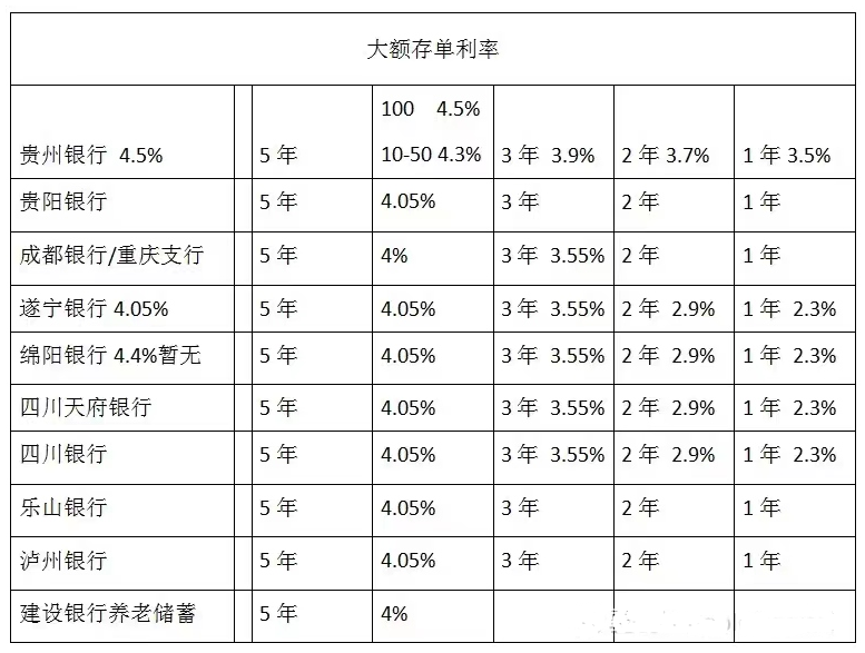另外包括成都银行、客商银行5年期大额存单利率也能达到4%。