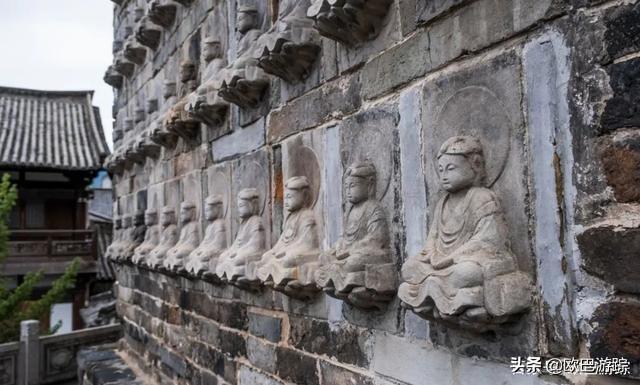 塔身刻有1003尊佛像,历经百年,依然不改宝相慈悲与庄严。来到千佛塔前,人们总习惯围绕着塔身转一圈,每一面都细细观摩。