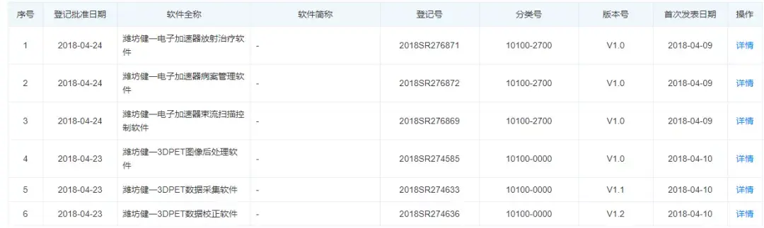 打开官网,目前处于关闭状态,具体产品仍不得而知。根据天眼查公开的专利信息,仅有电子加速器放射治疗、病案管理、束流扫描控软著和3DPET图像后处理、T数据采集校正软著申请,均在2018年4月获得授权。