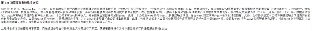 1月30日,尚高公司(以下简称“尚高”或“公司”;纳斯达克交易代码:SISI宣布与山东潍坊健一医疗设备有限公司(“健一”)签署《合作经营协议》,协议称联合生产与销售PET、PET-CT、PET-MRI核医学影像设备,全面助力肿瘤专科医院提升影像检查和诊疗质量。