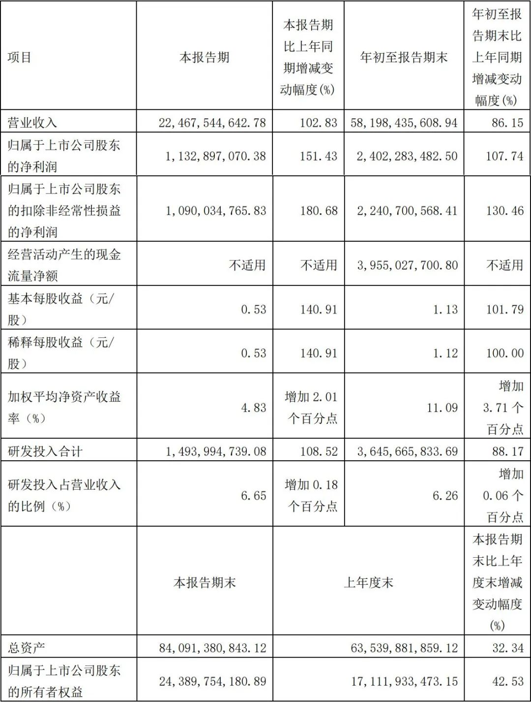2022年三季报营收582亿,同比增长86%,扣非净利润22.4亿,同比增长130.5%。
