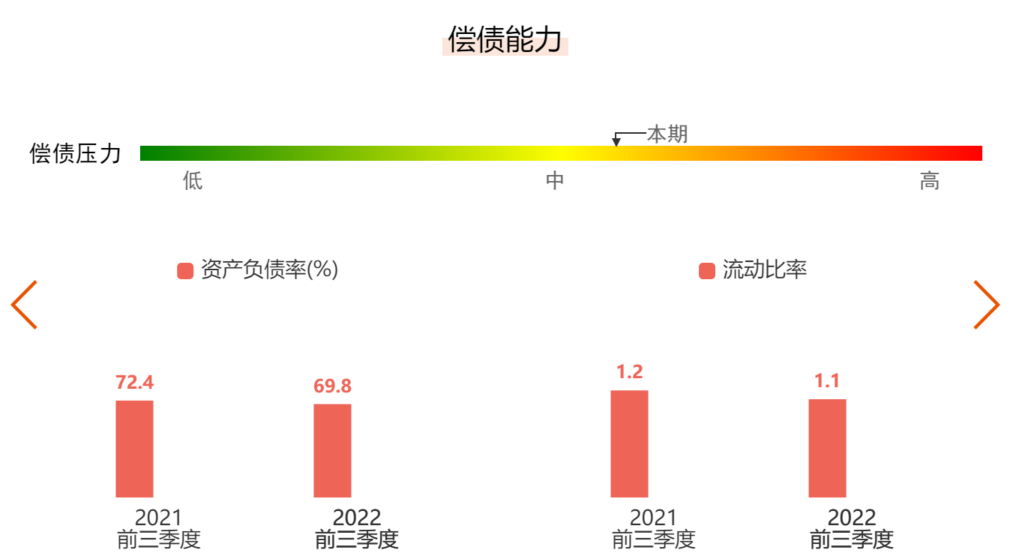 资产负债率一直处在高位,70%左右的资产负债率虽然算不上很高,但也不低