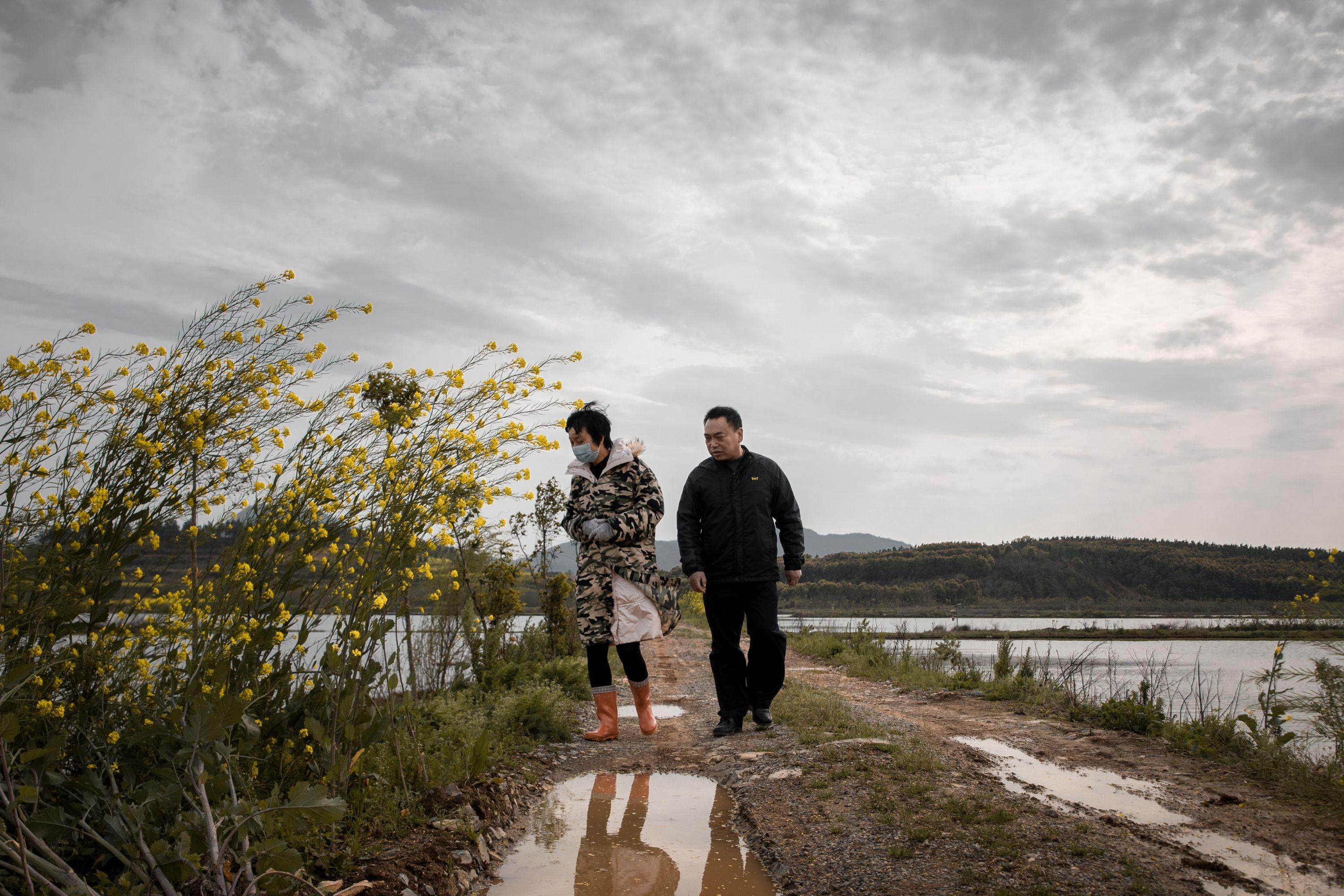 钟吸秀夫妇俩正在巡查天鹅湖。付伟 摄