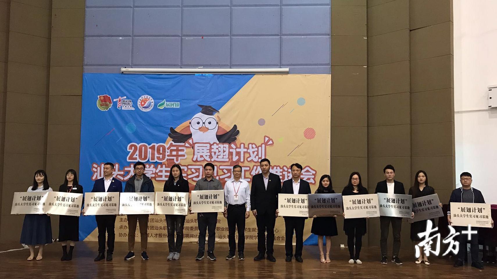 4月20日,共青团汕头市委、汕头职业技术学院在汕头职业技术学院(濠江校区)联合举行2019年“展翅计划”汕头大学生实习见习工作推进会暨招聘会。汕头超声显示器有限公司等12家单位被命名为“展翅计划”汕头大学生实习见习基地,133家企业现场举办招聘会,提供3000个岗位,为用人单位和在校学生搭建双向选择的平台。