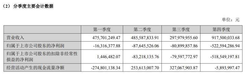 分季度主要数据显示,中化岩土在2022年没有一个季度是赚钱的,各季度的归属于上市公司股东的净利润分别为-1631.64万元、-8764.55万元、-8089.99万元和-52259.43万元。
