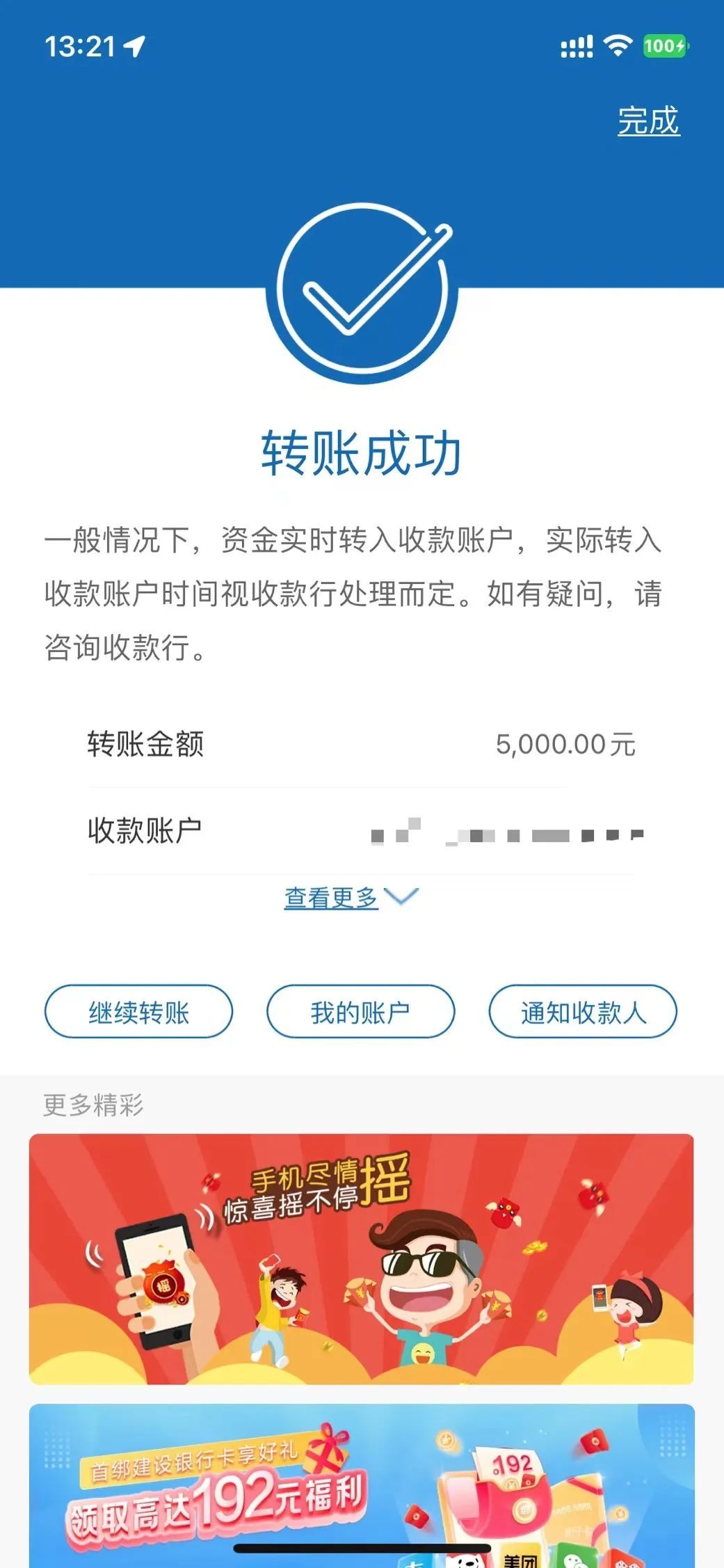 16日13时20分许,《中国银行保险报》记者尝试使用建行转账,页面显示交易成功。