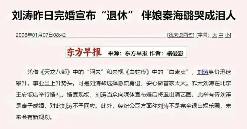 但刚让人意外的是婚后的第四个月,刘涛竟然宣布退出娱乐圈,