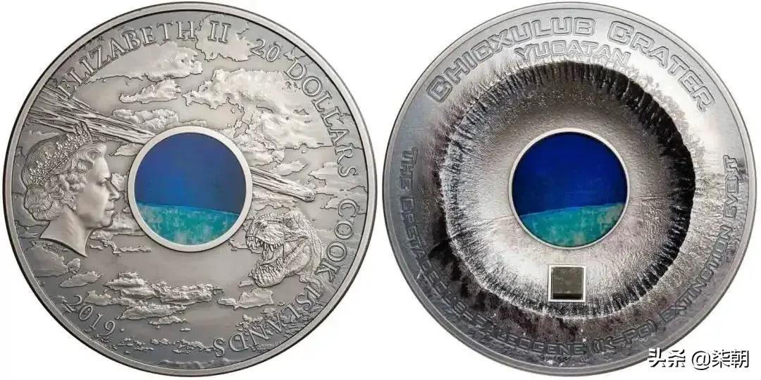 陨石币在世界硬币大家族中占有一席之地。这枚“最佳创意币”描绘了导致恐龙灭绝的陨石事件,其设计让陨石主题更加生动立体化。希克苏鲁伯陨石坑是一个在墨西哥犹加敦或称尤卡坦半岛发现的陨石坑撞击遗迹,曾经是地球上最大的陨石坑。希克苏鲁伯陨石坑的形成据推测是在6500万年前,与白垩纪-第三纪灭绝事件的年代相吻合,也是目前被广泛接受的造成恐龙灭绝的原因。