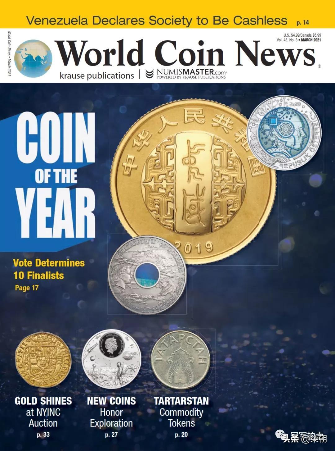 当地时间2021年3月1日,《钱币学新闻》(Numismatic News)官网公布了第38届世界硬币大奖“年度最佳硬币”奖,“美国登月50周年”5盎司银币夺得桂冠,该币也同时获得了“最佳时事币”和“最佳银币”两个单项奖。在早先公布的单项奖中,来自奥地利、美国、中国、法国、德国、库克群岛和英国等7个国家的9枚硬币荣获十大单项奖。