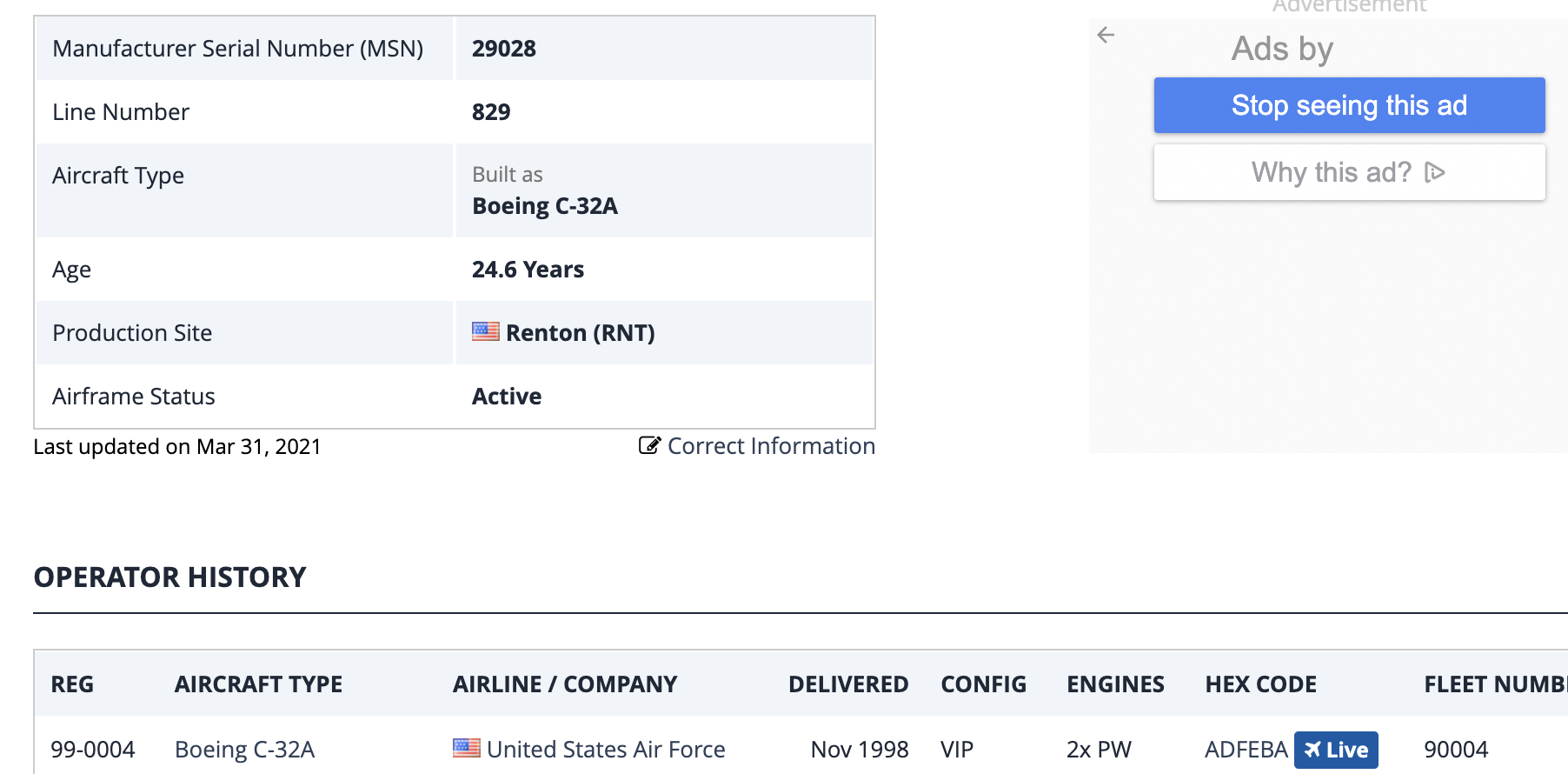 现在的C-32A基于757改装。美国空军斥资1600万美元升级四架专机。例如99-0004号机机龄已经24.6年,实际上C-32A已进入服役寿命的后半期。未来将改造成为一个通用的基础平台,该平台预计将承担E-6B和E-4B的角色。新的平台也被称为NEAT,可以执行